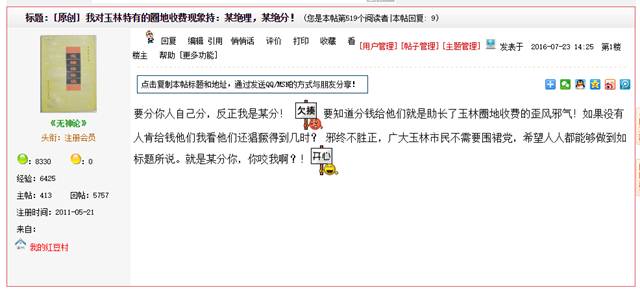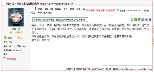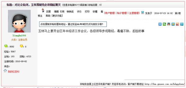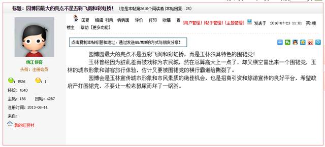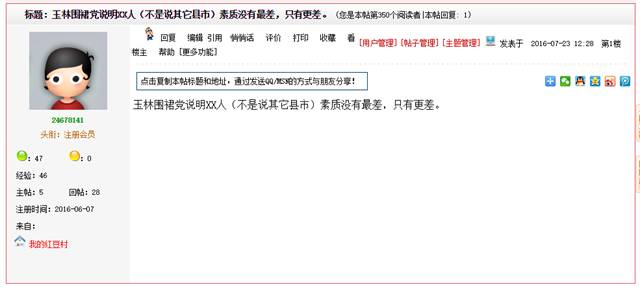 以下只是摘录部分网友见闻,如有关部门看到此信息,有则改之无则加勉,他们还在网上骂你,是希望给你一个改过的机会,玉林在往后的20年内已经痛失高铁的机会,难道连一个小小的围裙党都管不好?你让区内其它兄弟地市怎么看?