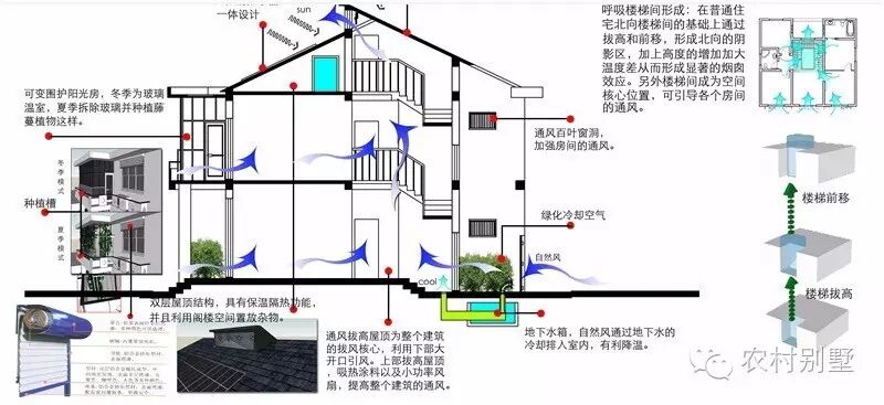 另一个特点是可变阳光间,根据江苏的气候特点,冬天玻璃房,夏季拆除并种植藤蔓植物来遮阳,是一种适合南方地区的低技术措施。尤其适合广东、广西、江苏地带的气候特点。