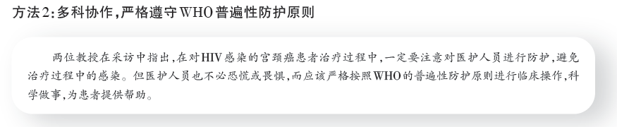 对于HIV阳性的宫颈癌患者,在临床上,只有在抗逆转录病毒(AR)治疗有效控制感染的基础上,结合内照射和(或)外照射,才有可能对患者的宫颈癌实现根治。其中,AR治疗是关键,需要感染科医师的协助。
