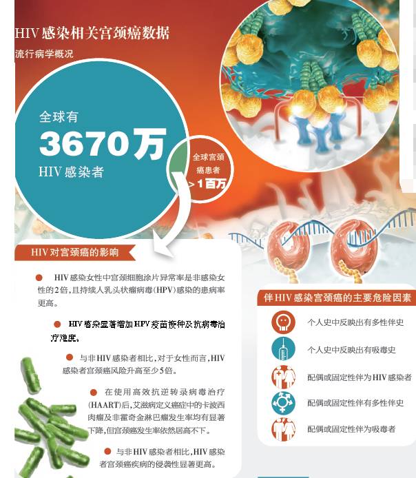 宫颈癌作为唯一病因明确的妇科恶性肿瘤,其发病与高危型HPV持续感染密切相关。HIV感染者由于免疫功能受损下降,更易感染HPV,也更易发生宫颈癌。