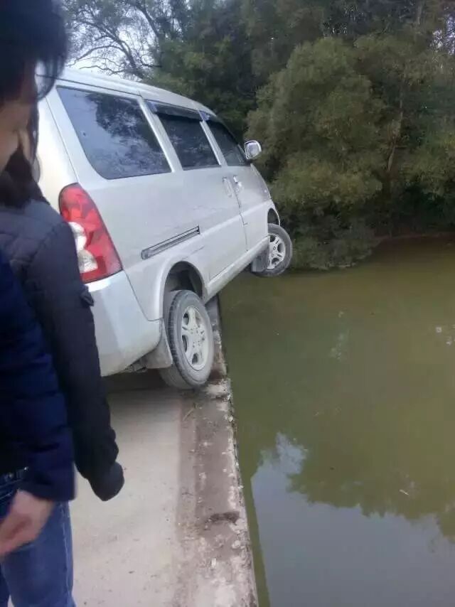 昨天一辆五菱面包车不知道什么原因,整个车头有一半是悬空在桥上,整个车子摇摇欲坠,让人看了就倒吸一口冷气,而且桥底下的水经常都是很浑浊,一旦掉下去,后果不堪设想。