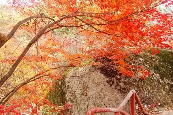 有人说,天桥沟的枫叶是头毛色华丽的小动物,当它嗅到一丝秋天的气息时,它便会以飞快的速度跑遍整个山脉,将这长长的峡谷笼罩在它火红的影子里。10月是天桥沟枫叶最红、最艳的时候,那时层层叠叠像水彩晕染开的枫叶绽放在森林间,繁华如花。