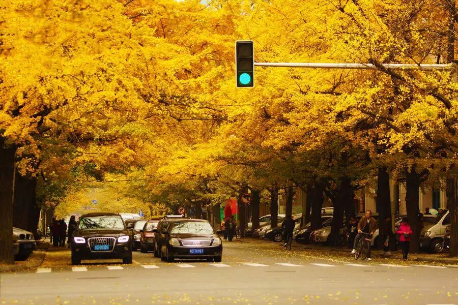 世界各地种植百年银杏树的街道有6条,而丹东就独霸了3条。每年10月下旬,六纬路、九纬路、七经街的银杏开始渐渐金黄。而当银杏叶洒满在地,铺就金色大道时,一个北方的秋,就要离去了。