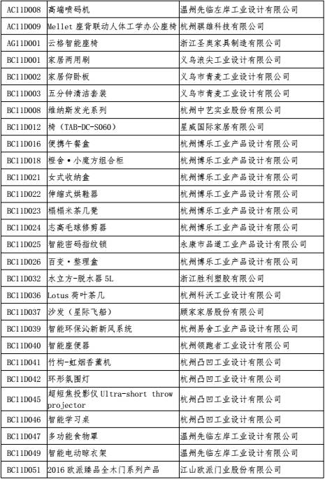 附:“2016年中国优秀工业设计奖进入复评产品(作品)公示”名单