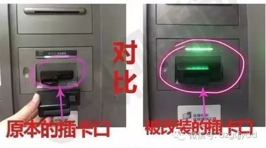 近日,浙江新昌警方通报破获一起刷案,嫌疑人在ATM入卡口加装读取器,,记录你输入的密码!一旦插磁条操作ATM,他们就可能盗刷你的!他们已盗刷100多万元!取钱时,看到下图这些,就马上报警!