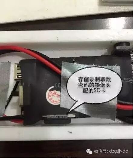 塑料插卡槽的外观和ATM机插卡槽相似,直接套装在ATM机原插卡槽上,卡槽背面装有微型“读卡器”,用来读取信息。金属键盘面板的外观材质和银行ATM机的原始键盘基本无区别,直接套装在ATM机原键盘上,用来记录密码。长条形“铁块”的外表看不出任何端倪,像是ATM机原部件,与键盘相连接,安装在键盘面板旁的凹槽处,背面为读取存储装置。