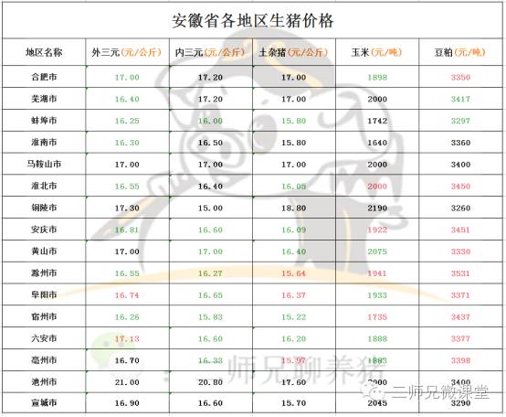 下面来看看安徽、江苏各省市具体的生猪价格。