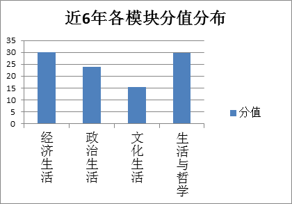 由上图我们可以看出:《经济生活》 、 、《文化生活》 、《生活与哲学》四大模块中,近6年的高考考查频次为: