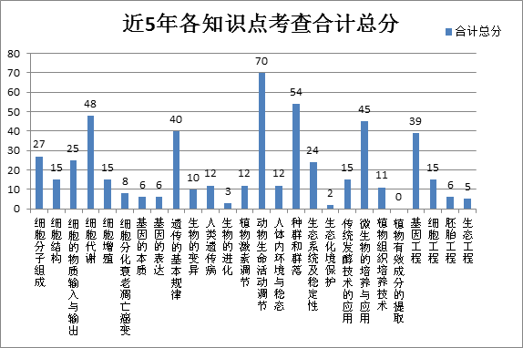 动物生命活动的调节,种群和群落,细胞代谢,微生物的培养与应用,遗传的基本规律,基因工程,年均分别14分、10.8分、9.6分、9分、8分、7.8分。