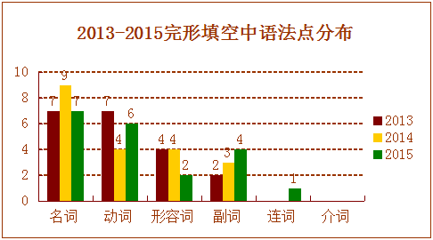 高频考点为名词单复数、连词、冠词、介词、形容词和副词、动词时态和代词。