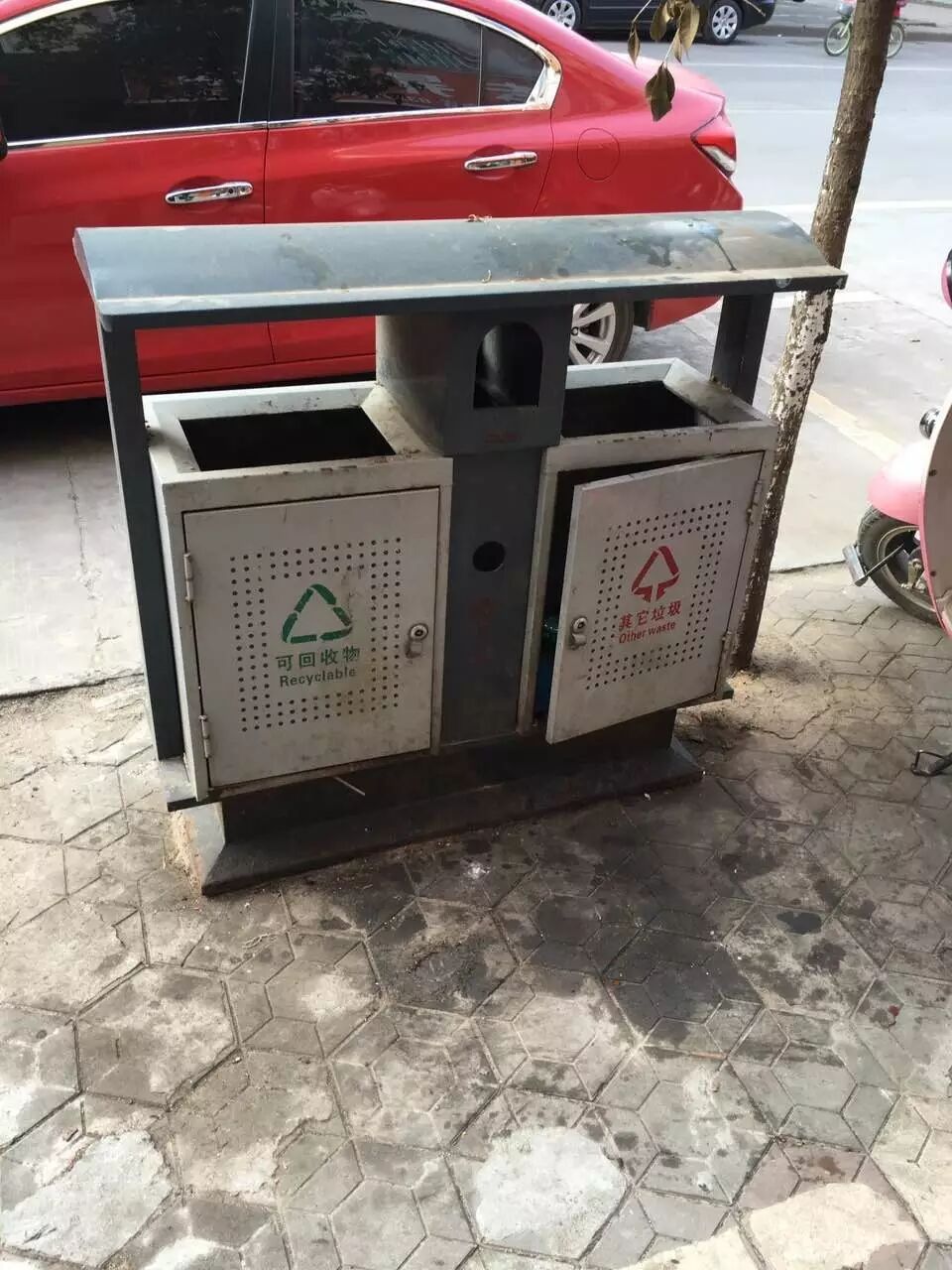 但是心细的圈友发现一个细节,有些垃圾箱里的桶却不见了。那么桶不见了垃圾箱还有什么作用,没有办法垃圾也只有堆放在垃圾桶旁,或者随意丢进没有桶的垃圾箱里。