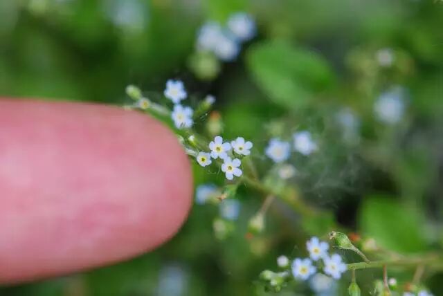 附地菜大概是我们平常见到的最小的花朵了。凑近一看,忽然发现,天啊,平常看起来稀稀拉拉的花葶上,竟然挂着精致的小花,,至于花蕊都藏在圆圈下面的“小管子”(花冠管)里呢。