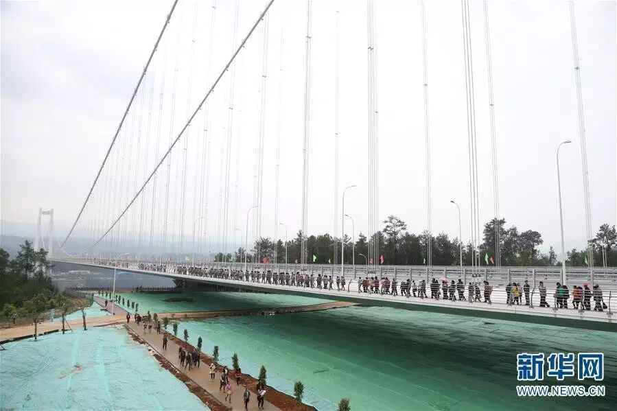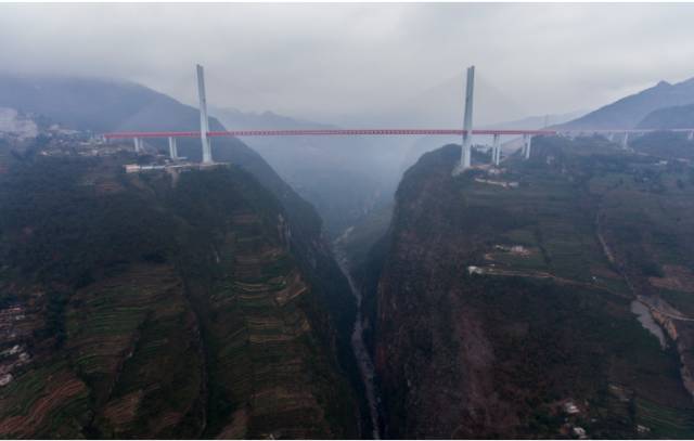 12月29日,横跨贵州省六盘水市都格镇和云南省宣威市普立乡的北盘江大桥正式建成通车。大桥由云贵两省合作共建,全长1341.4米,桥面到谷底垂直高度565米,相当于200层楼高。