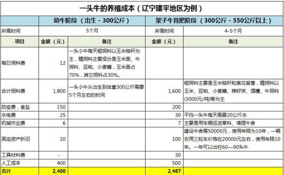 以我们调查的辽宁朝阳地区的建平、喀左、凌源为例来看肉牛生产的利润有多少。