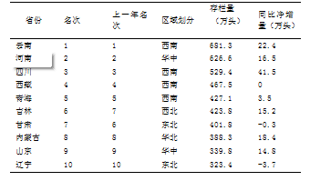 辽宁在全国养牛大省中排在第十位, 内蒙排在第八位。