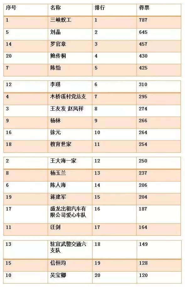 哪些候选人最能代表即将过去的2016?谁将当选宜昌“平民英雄”?一切由观众投票决定。截至今日16时,得票情况如下:
