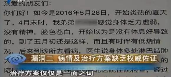 漏洞二:病情及治疗方案缺乏权威佐证