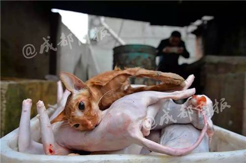 “猫肉肉质好,当成兔肉卖的话,用四分之一的量就够了。”黄平富向成都商报记者推荐。之后,他又压低声音:“不过成都不准卖这个(猫肉),我们自己经常吃。凉拌、炒回锅都好吃,以前我开羊肉馆的时候,搭着干锅卖,用猫肉当兔肉卖,很多人都喜欢吃。”