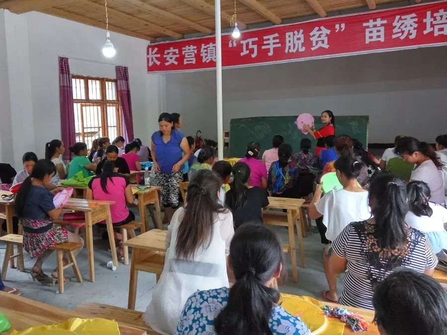 2016年,在政府的帮助下,城步苗绣文化研究所志愿服务团队在城步苗族自治县僻远贫困山区长安营镇岩寨村,开展带领农村留守妇女“巧手脱贫”志愿苗绣培训服务。4月份以来共培训三期,培训人次达300多人,总产值突破300万,70%以上的妇女人均月收入达到1500元。并组织企业家、社工和社会各界人士参加苗绣作品公益拍卖,结合当地旅游产业,形成文化+旅游的模式,让当地农户真正“巧手脱贫”,同时解决农村留守儿童问题。