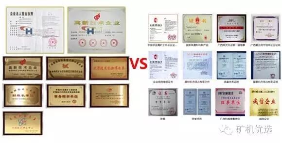 桂林鸿程(左)和桂林矿机(右)部分企业荣誉证书