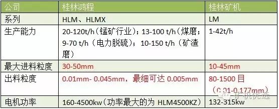 立式磨粉机:鸿程的立磨系列较多,有专用于锰矿、冶金、矿渣加工等行业的产品系列。在生产能力、最大进料粒度和成品细度上,鸿程的立磨比桂矿的更易吸引用户。