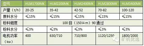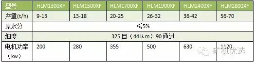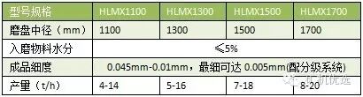 桂林鸿程HLMX超细立磨参数表(数据来源其官方网站)
