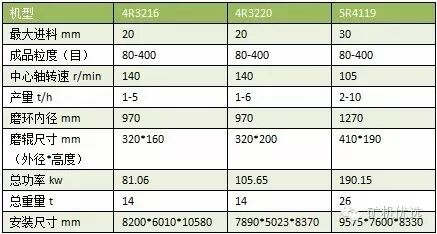 桂林鸿程R型磨粉机参数表(数据来源其官方网站)