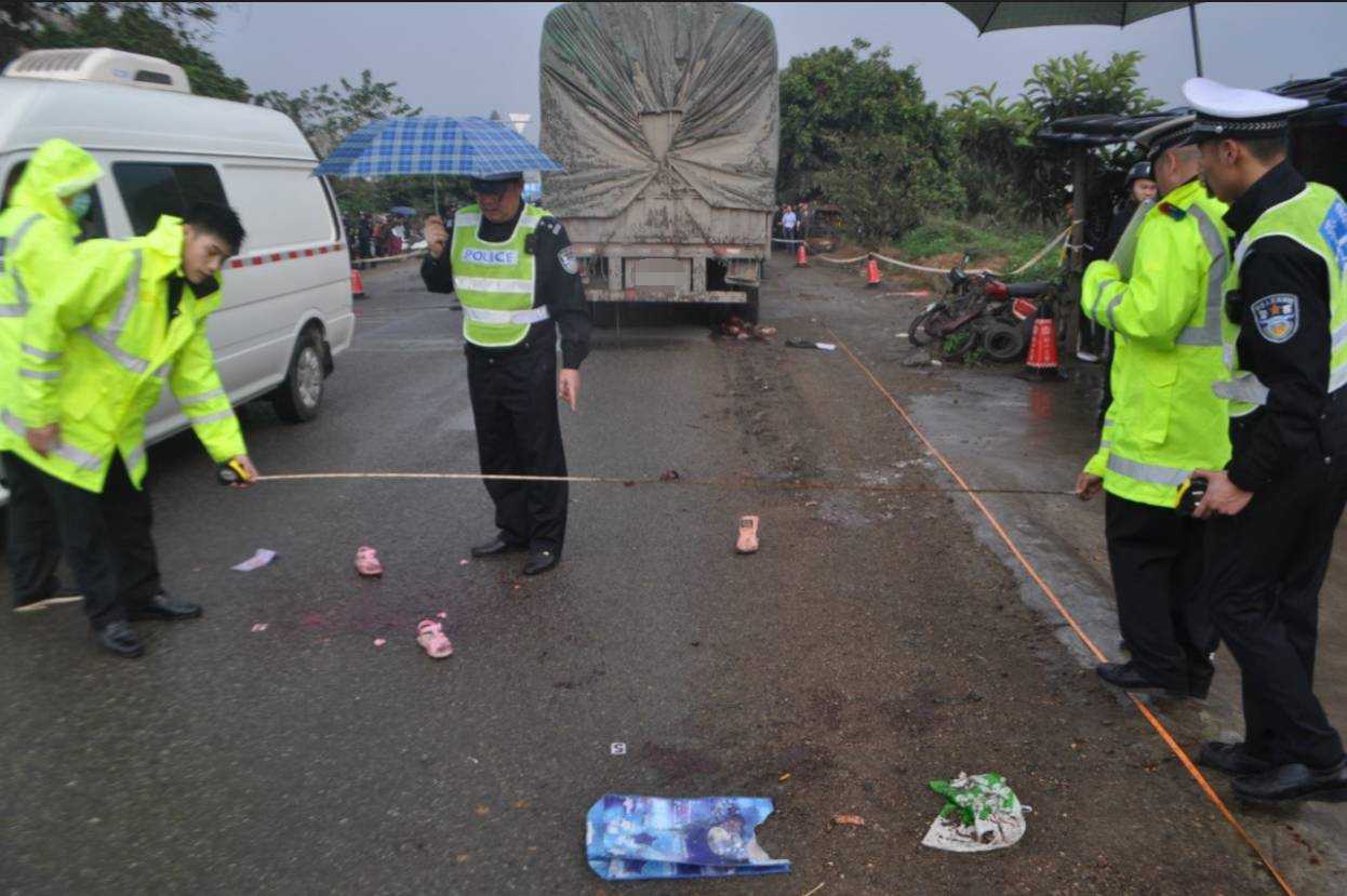 ,5名涉事女童均系木乐镇广仁村小学学前班至6年级的学生,事发时正值学校放学,老师在该路段往来方向放置警示锥桶,引导学生集体横跨马路,不想一辆由桂平往平南方向行驶的大货车经过,驾驶员梁某马上采取制动措施,但避让不及导致悲剧发生。