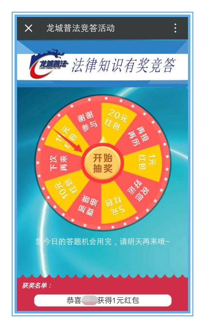 2.每人每天有两次答题机会,五题答中三题可参与抽奖。