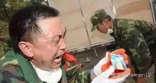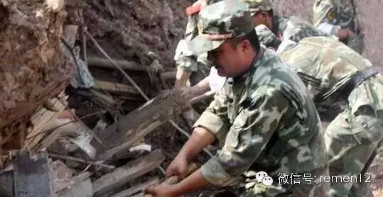 在北川县城参与救助的解放军官兵发现儿童的照片,忍不住痛哭。