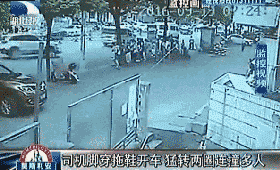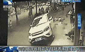 19日上午,湖北宜昌一辆越野车突然失控,猛转两圈,接连撞倒7人,现场监控拍下惊险一幕