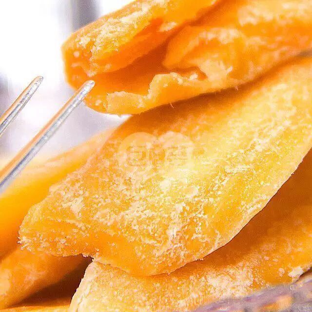 精选用广西右江河谷生长的紫花、台农两种芒果,果源地新鲜直采品质看得见,精心挑选,去皮削片,糖浸冷水,低温烘焙,最后冷风干燥,才制作出香甜鲜嫩,自然细腻的芒果脯。