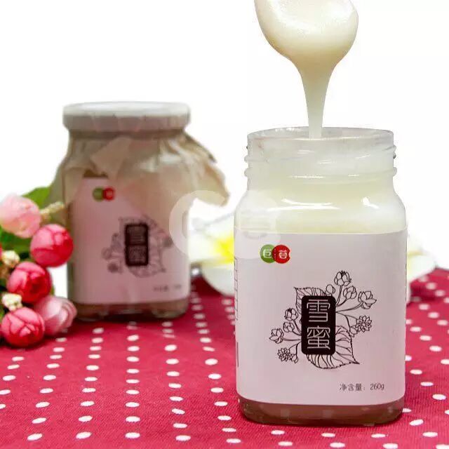 雪蜜又名椴树蜜。椴树是一种生长在长白山原始森林的乔木,无法人工种植,由椴树花蜜酿成的椴树蜜,相比种植花蜜蜜源,自然纯净,无农药、化肥的人工残留,近乎野生原酿。
