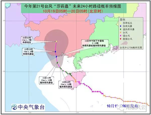 预计,“莎莉嘉”将以每小时10~15公里的速度向西北方向移动,并于19日中午到下午将在中越交界附近沿海再次登陆(热带风暴级或强热带风暴级,9~10级,23~28米/秒)。
