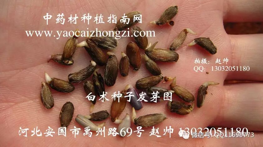 改良白术第二年结种子,采集种子时要去掉不良的植株,选择强壮的、无病害的果实留种,以确保纯度和质量,为来年生产做到好的保障。改良白术并非十全十美,也有弱点,它怕水,如果积水过多或时间长,就会导致死亡。种植时选地尤为重要。据试验表明:在南方各省只要不上冻就可以种,早春三月种的质量还要好一些,这就是得天独厚。 咨询电话 赵喜进老师:15630285676 赵 帅老师:13032051180,也是QQ 微信号 链接1:改良白术种植技术视频 链接2:改良白术种植技术