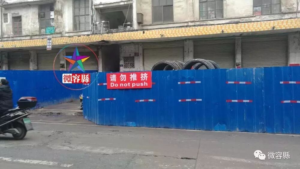 燕塘街路段,一幅铁皮围的外墙上贴了一张提示牌:请勿推挤。并且还用标上了英文,顿时,觉得容县也开始国际化高大上了许多。有没有?有没有?有没有?