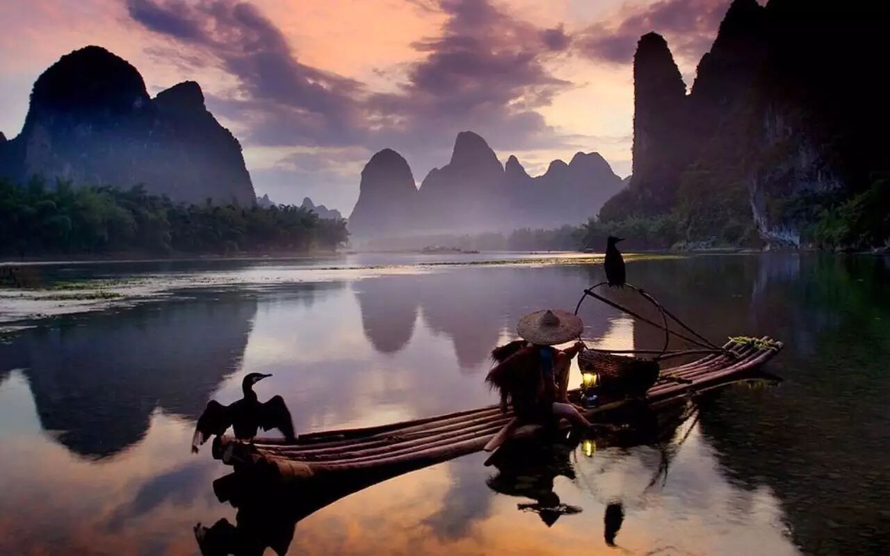阳朔位于漓江西岸,二十元