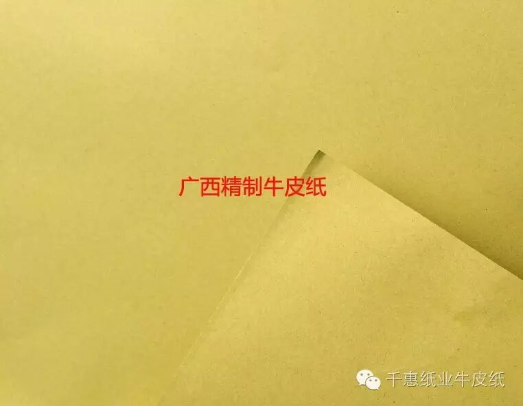 广西精制牛皮纸为双面黄色牛皮纸,主要用于印刷及瓦楞彩盒等用途。