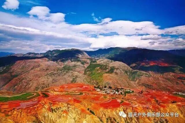 放眼望去,山川和原野呈现出一片片暗红、紫红、砖红等不同的红色。
