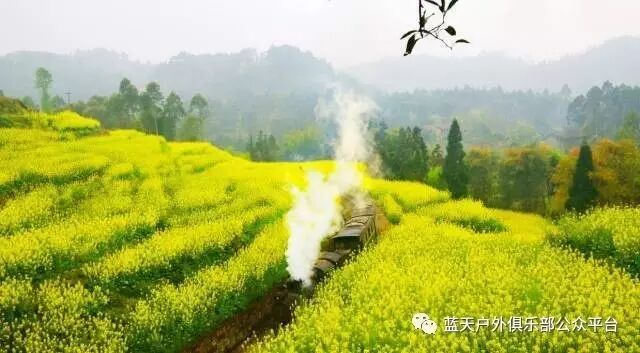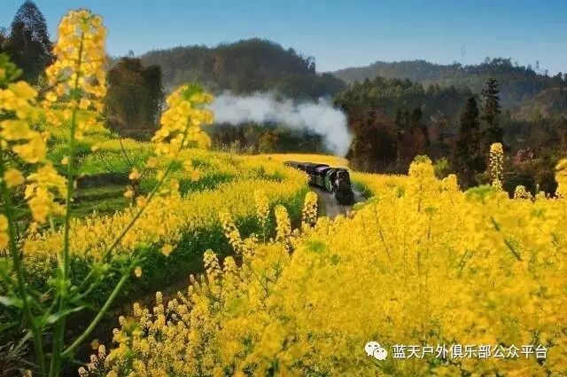 山野里每天响着清脆的汽笛声,穿梭在金黄色的花海间。