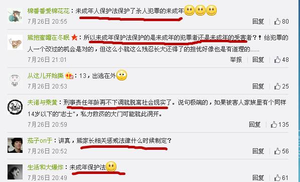 案件虽然告破了,但是这样的悲剧却无法让人感到些许欣慰。很多网友纷纷在微博下表达了愤怒和惋惜,同时也将矛头对准了《未成年人保护法》。