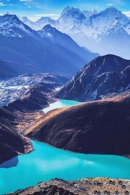 尼泊尔从海拔8844.43的珠穆朗玛峰到海拔百米的南部平原,有着海拔跨度最大的地理特色。因此,你穿着短袖仰望茫茫雪山,是一件最平常的事。