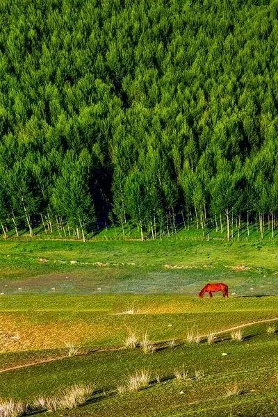 到了这里,你就可以四处游走,寻找自己喜欢的角度欣赏这满山的杏花了。除了杏花,你还能在山上看见白色、褐色的马群,配着绿色的草地,散发出一种生机勃勃的感觉。