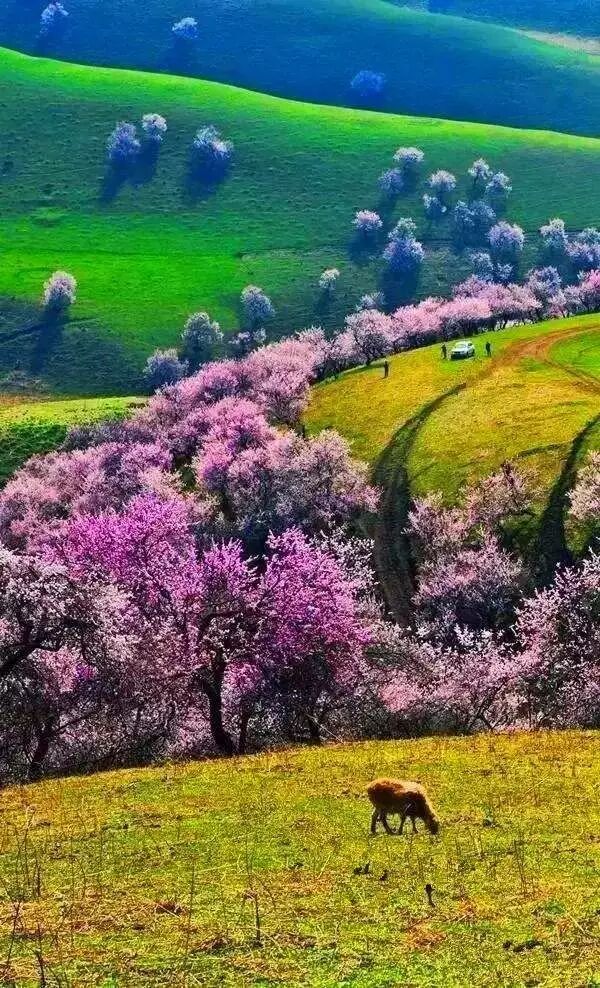然而,春天的新疆绝对不止这些曼妙的花海。它还有湛蓝的天空与湖泊、绿色的草原与森林、大地色的沙漠与山川……
