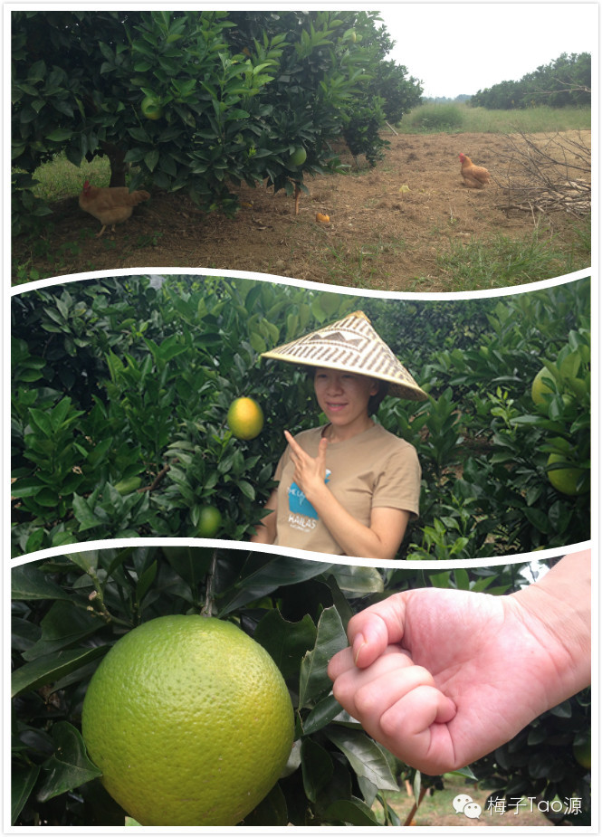 实地考察:梅子去年就去农场实地考察了,果园里,几只农家鸡在树下捉虫吃,悠闲自得,与养鸡场的鸡比,放养的走地鸡算是一种幸福。树上青色的脐橙已挂满枝头,果实累累,色泽鲜艳,比梅子的拳头还大!
