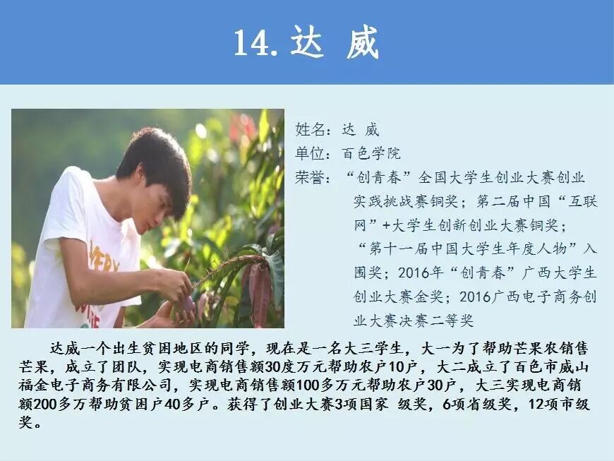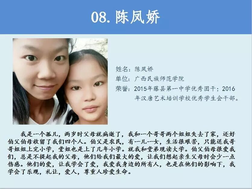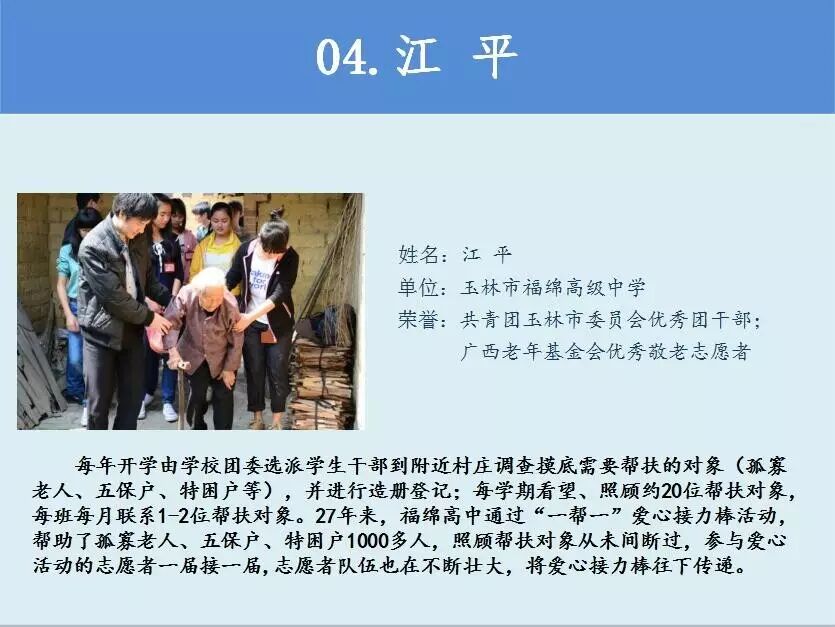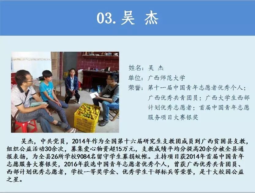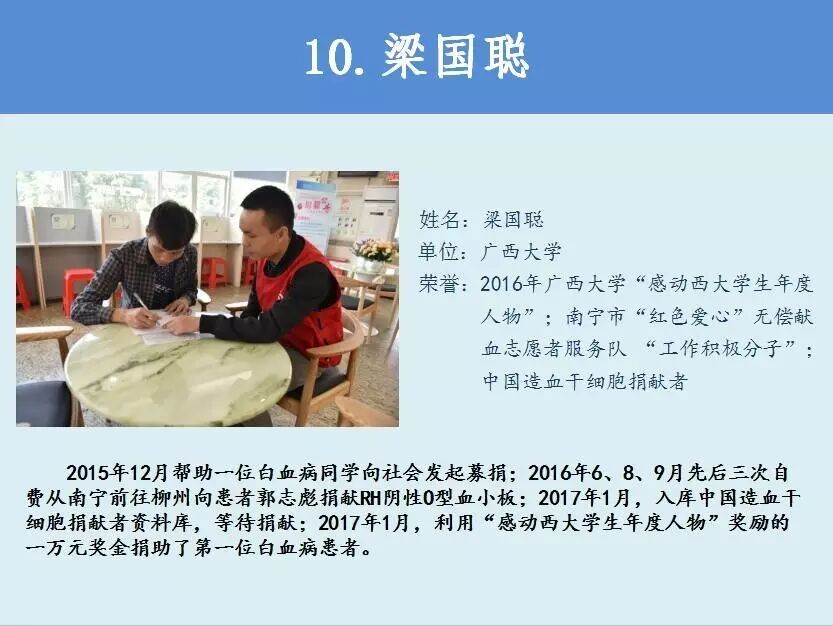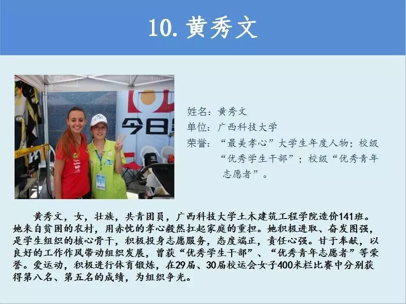 向上向善好青年,传递青春正能量!下面就是咱们广西100名候选人的精彩事迹啦,谁是你心目中的向上向善好青年呢?一起来看看吧~