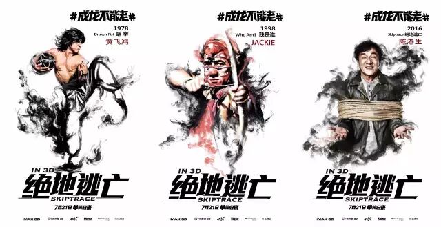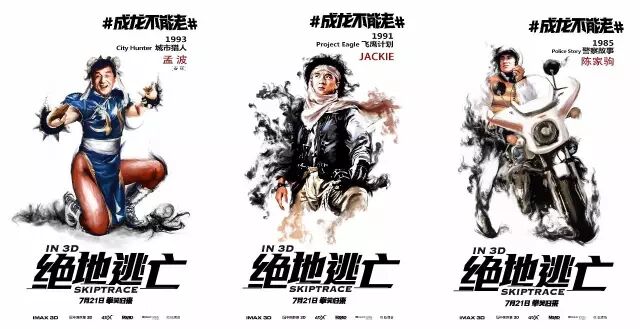 此外,片方今日特发“致敬成龙银幕经典”海报。《醉拳》中的学武少年黄飞鸿、《警察故事》中的陈家驹、《我是谁》中变成土著人的杰克……一个个成龙经典形象从水墨中浮现出来,我们的回忆也随之鲜活起来。到如今的《绝地逃亡》,已经62岁的成龙依旧在银幕上挥拳打斗,让人在观看影片欢笑的同时多了一份心疼。