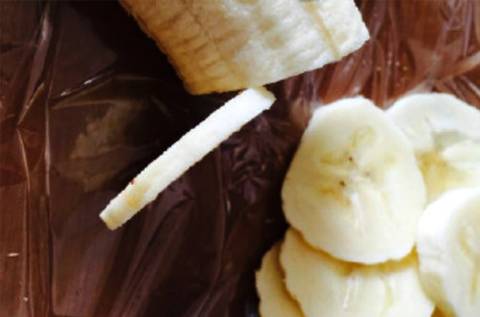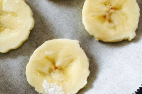1.挑选成熟的香蕉,不软不硬刚刚好,剥皮切成3毫米左右的薄片;