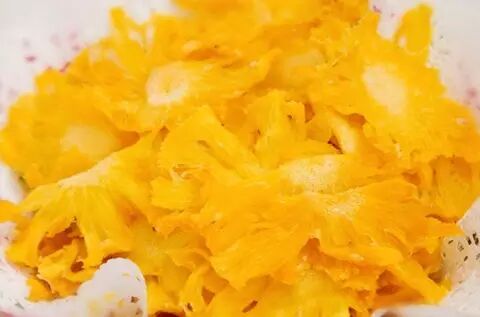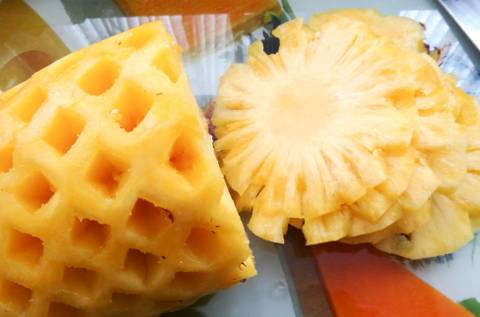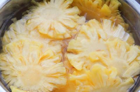 1.菠萝去皮,洗净切片,尽量切薄一点儿;