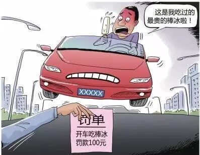 7月4日下午,杭州交警在路口执勤时,发现一辆小型客车的驾驶员在驾驶机动车过程中吃棒冰。